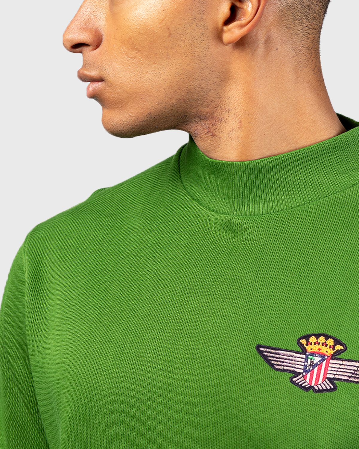 - Jersey confeccionado en punto de algodón verde de alta calidad.