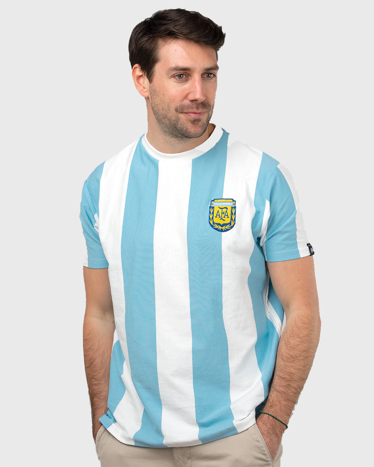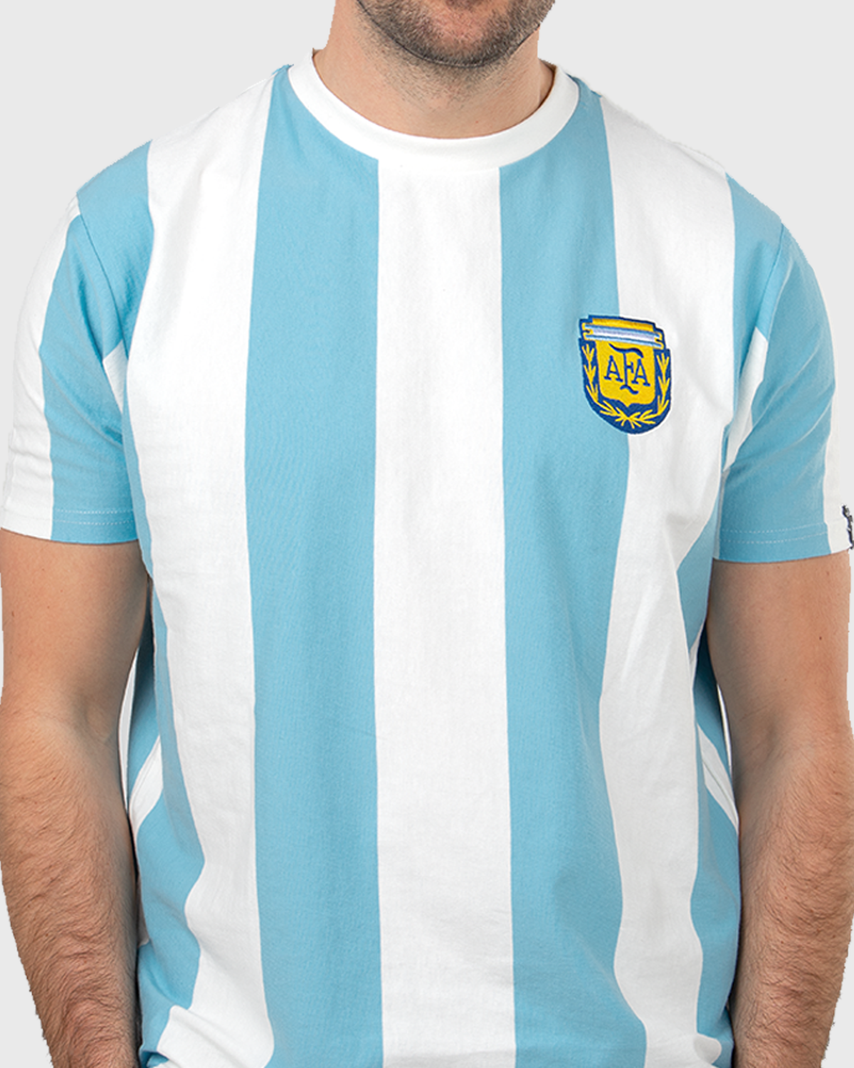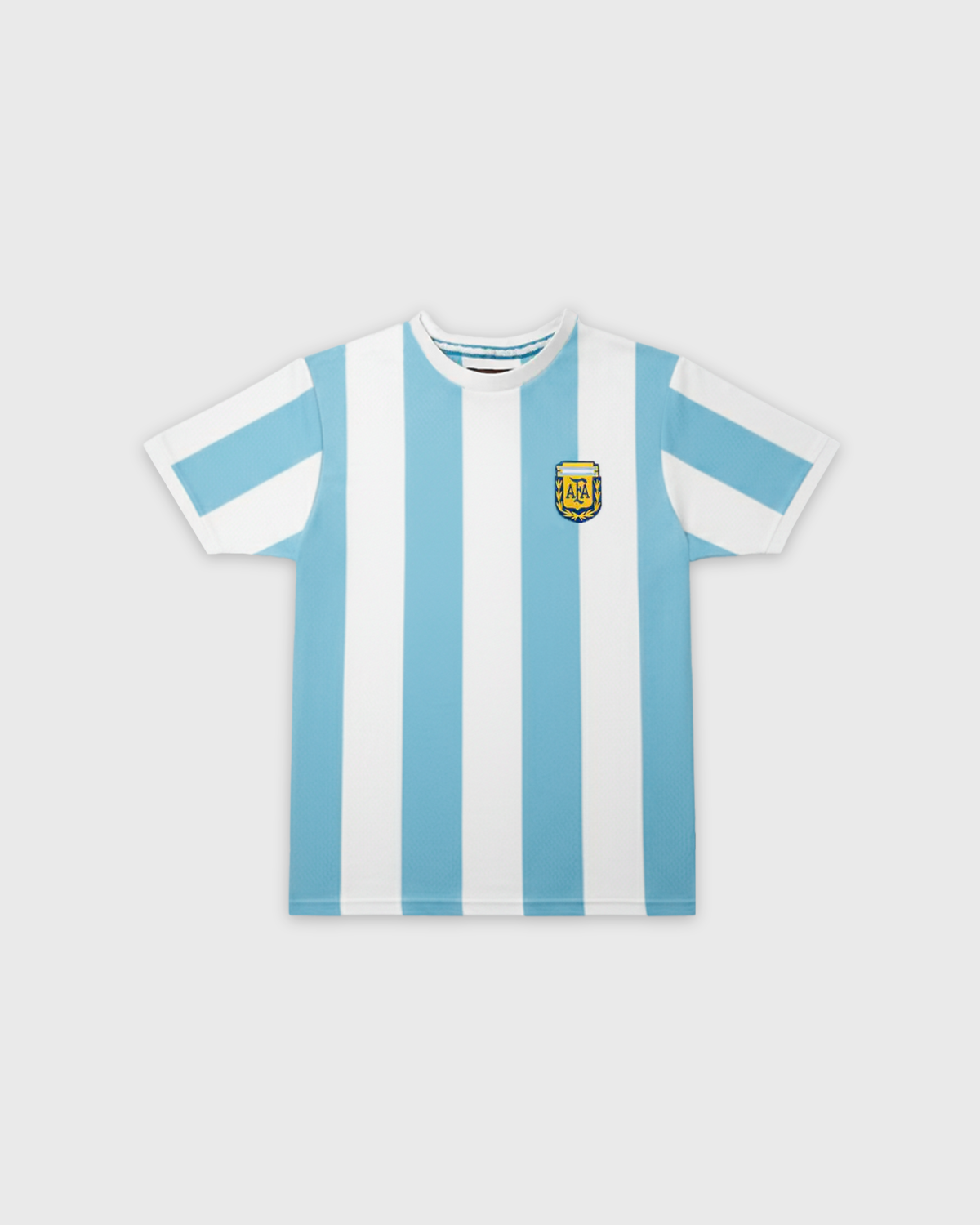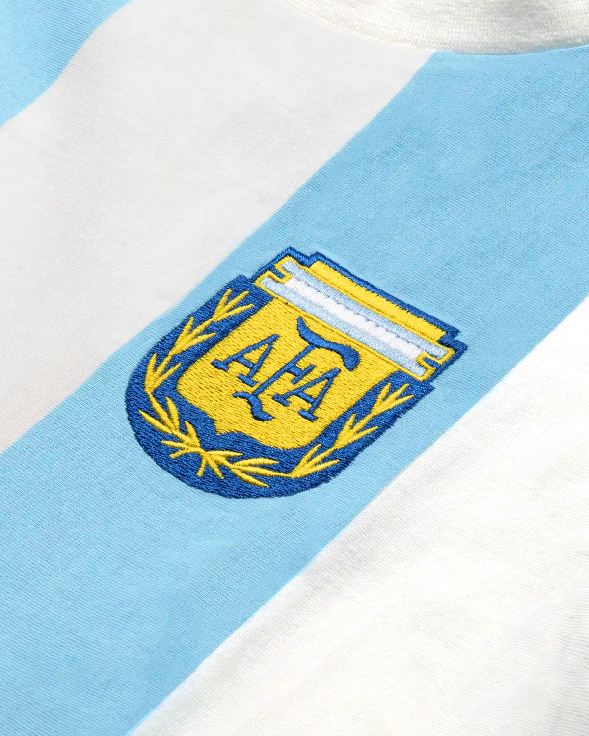 - Diseño: Cuello redondo, mangas cortas y escudo de la selección argentina bordado en el pecho.